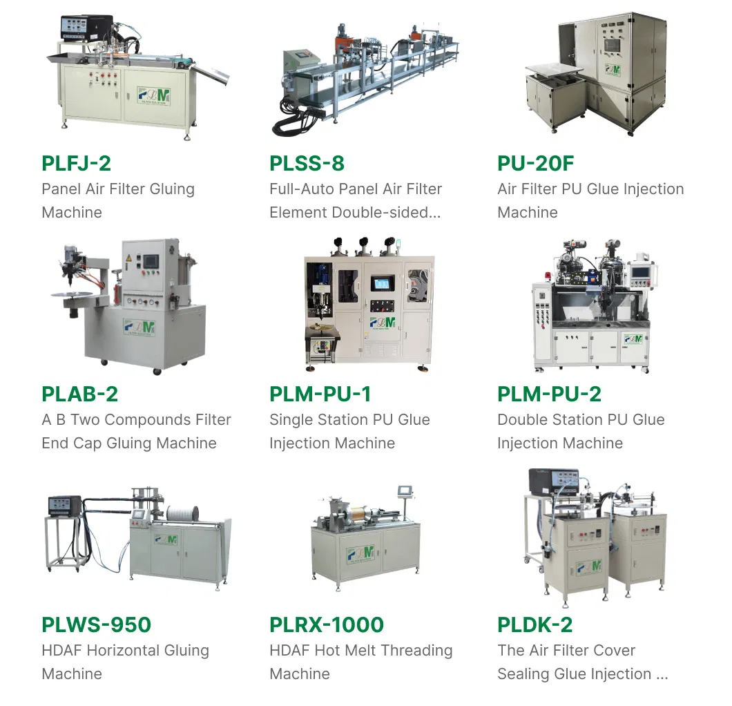 Glue injection machines are indispensable in filter manufacturing, including PU, hot melt, AB two-component, and plate sealing machines. These systems improve production efficiency, optimize quality, and ensure automated control.