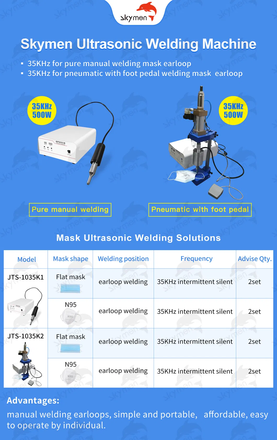 Industrial Application: Commonly used for joining plastics, dissimilar materials, and embossing. Ideal for PP, PE, and Non-woven fabric mask manufacturing.